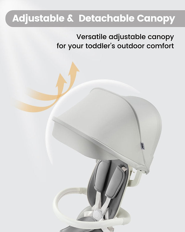 🤫 Silent & Versatile Rides: EVA silent wheels glide smoothly indoors/outdoors without squeaks; removable canopy blocks harsh sun—ideal for playdates, parks, or errands.