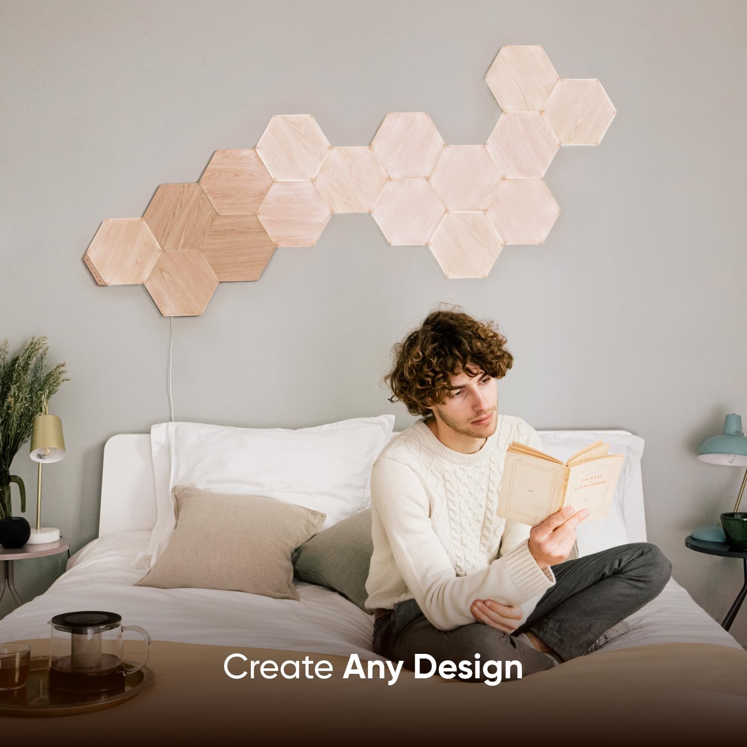 Featuring organic hexagon shapes inspired by nature, the panels double as decorative art even when turned off. When illuminated, they cast soft, inviting light, transforming your walls into a focal point that balances artistry and functionality.