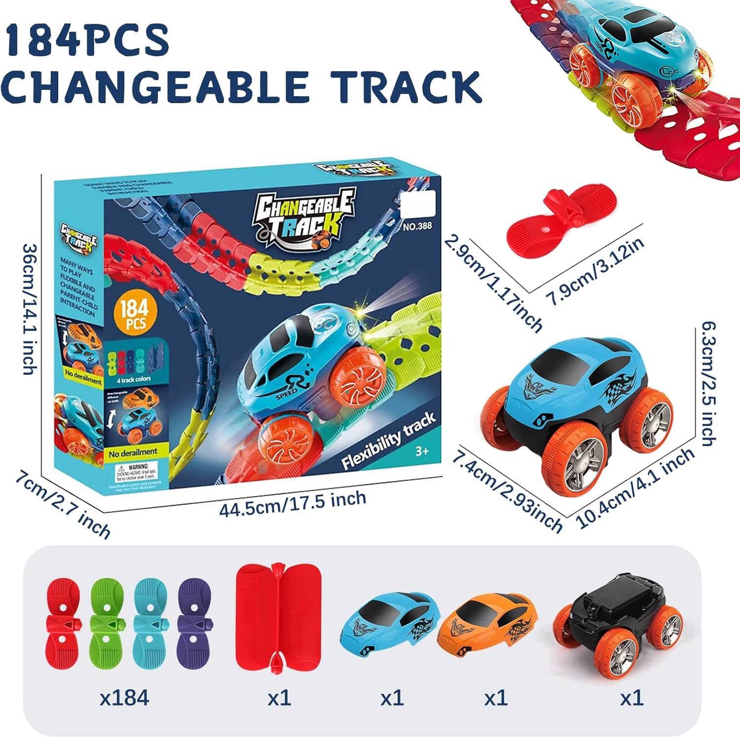 - Set Includes: Race track, cars, loops, and flexible rails 🚗🛤️